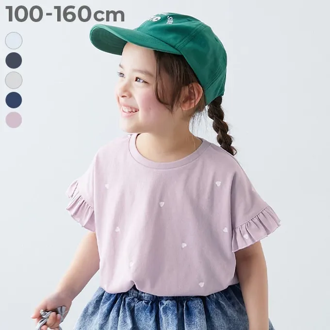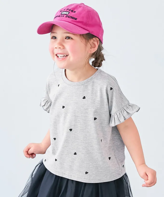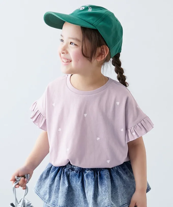 日本 devirock - 小愛心飄逸荷葉短袖上衣-粉紅
