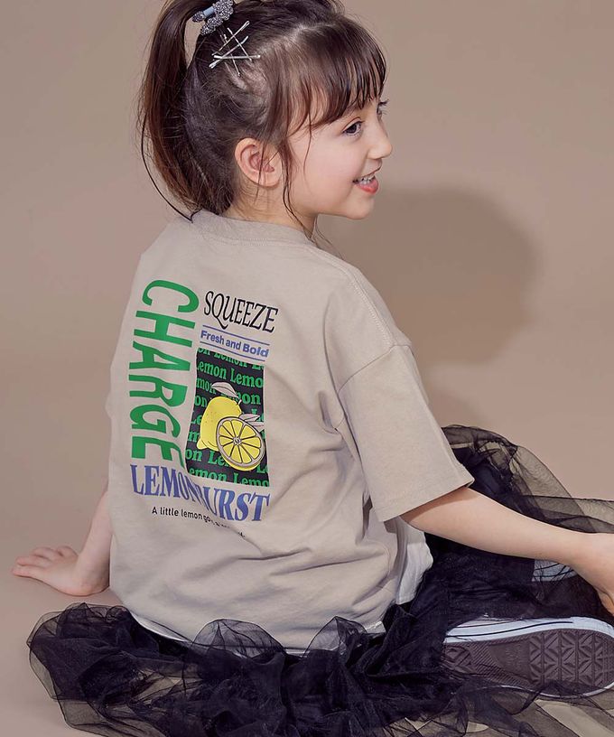 日本 devirock - 100%棉 帥氣印花短袖上衣-檸檬廣告-灰棕