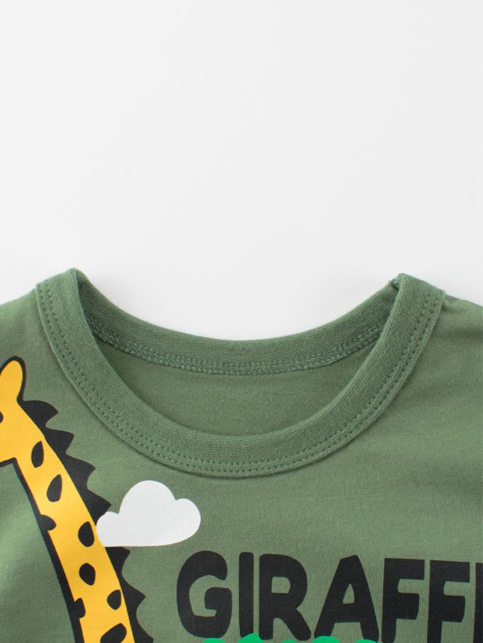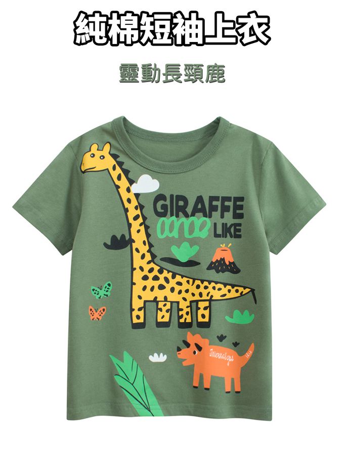 純棉短袖上衣-靈動長頸鹿-綠色