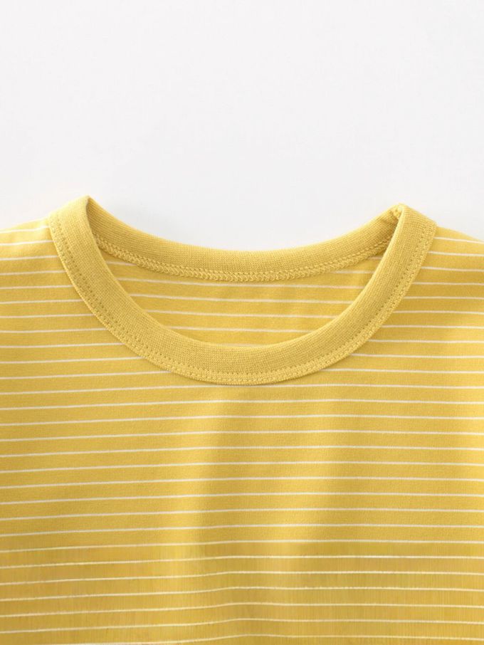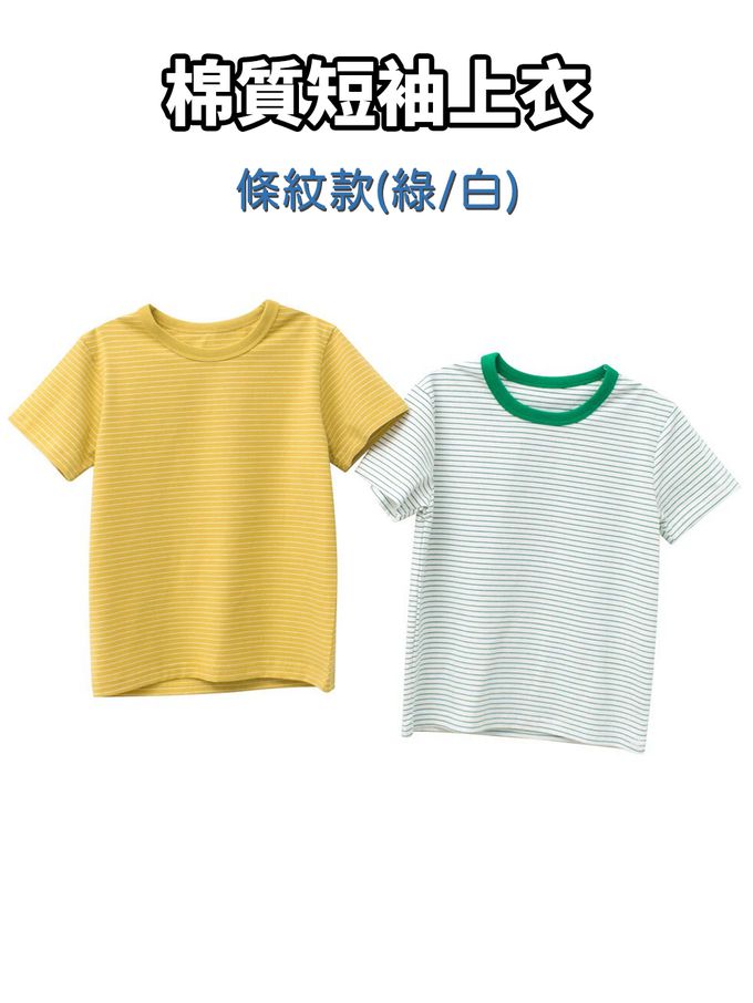 棉質短袖上衣-條紋-綠/白