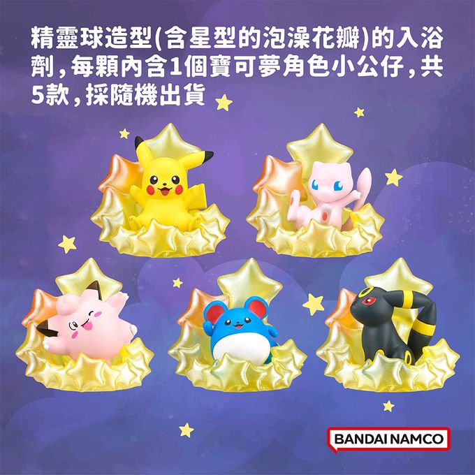 以寶可夢「高速星星」招式為靈感設計的入浴球,共有5款公仔,等您來收集~