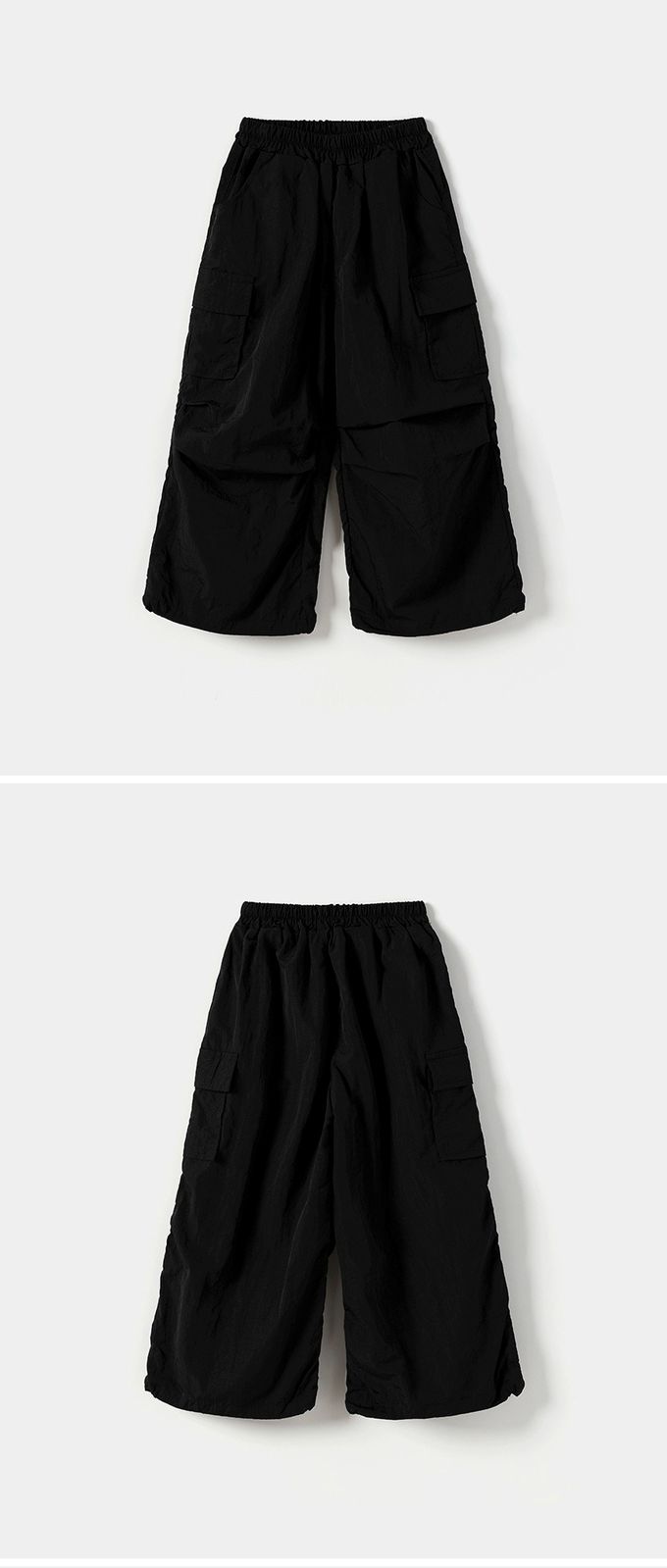 韓國 OZKIZ - 鬆緊腰立體抓褶口袋寬鬆工裝長褲-黑