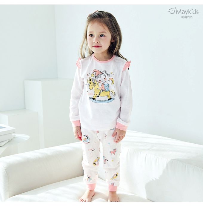 韓國 Maykids - 透氣條紋提花棉長袖家居服-童話夢鄉