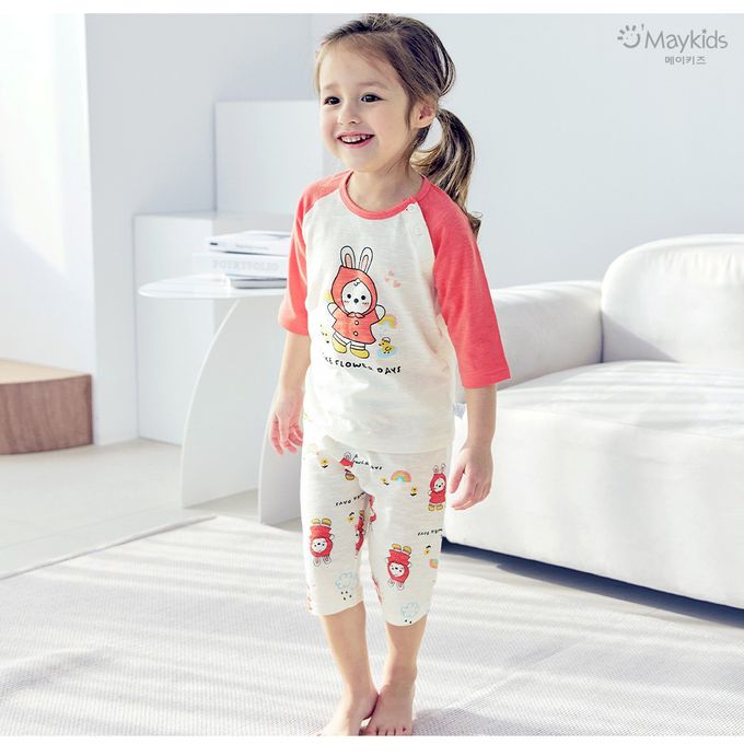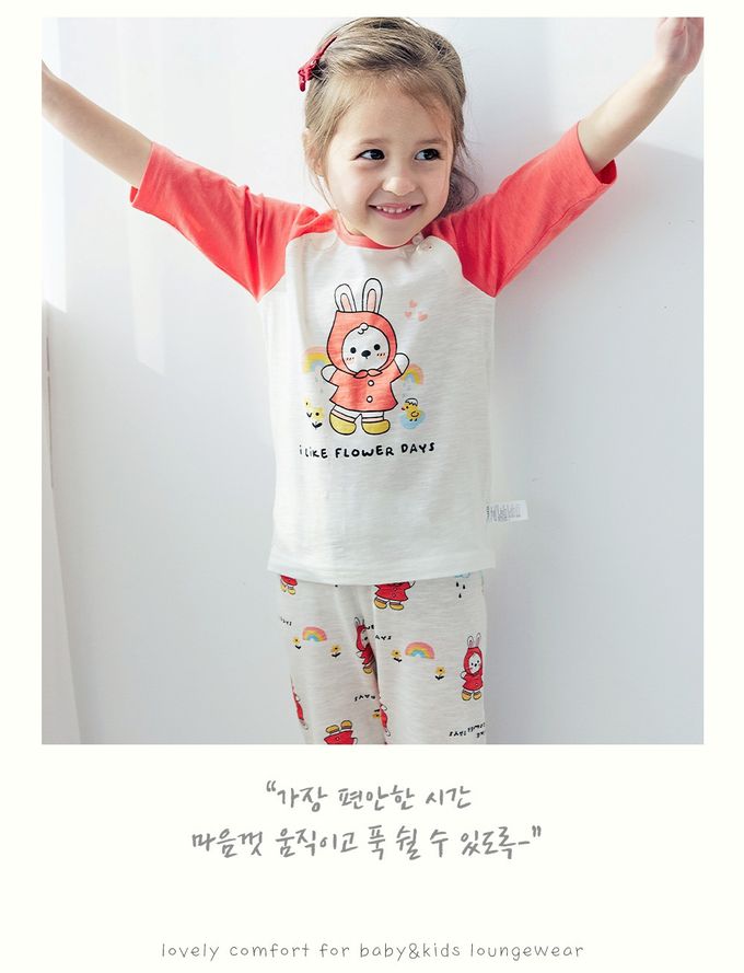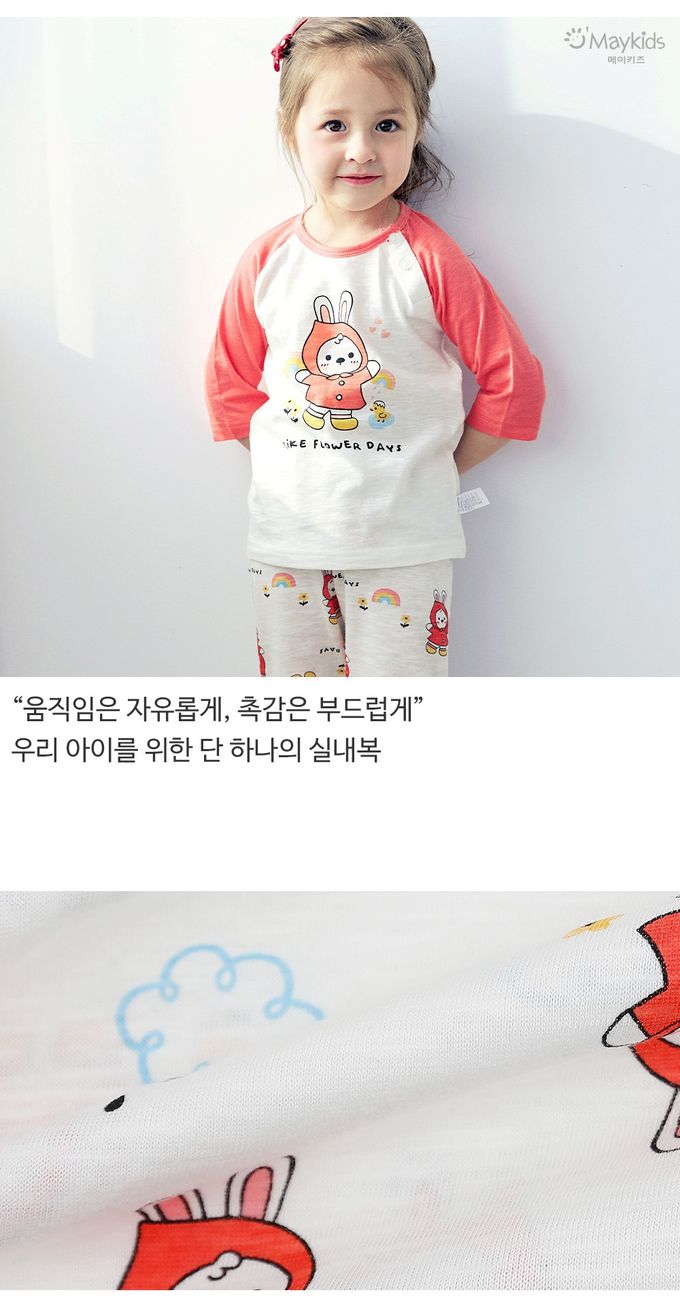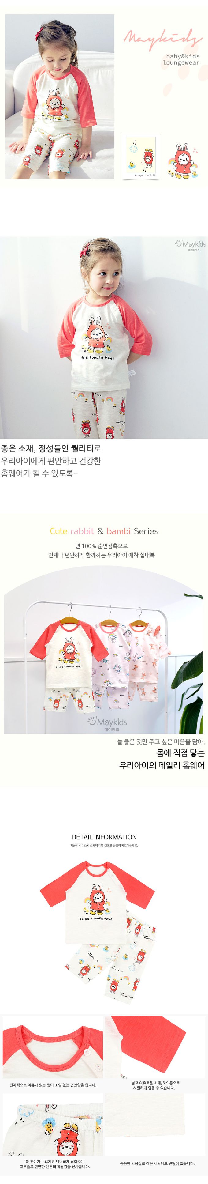 韓國 Maykids - 輕薄細柔棉七分袖家居服-紅斗篷兔兔-米X紅