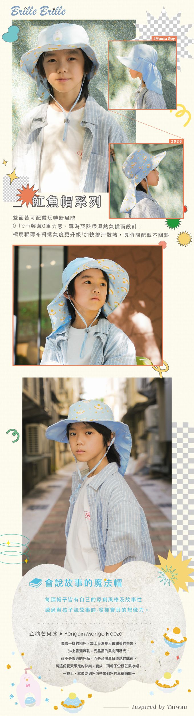 品名:Brille Brille 頸部防護兒童防曬帽(加長型)-企鵝芒果冰