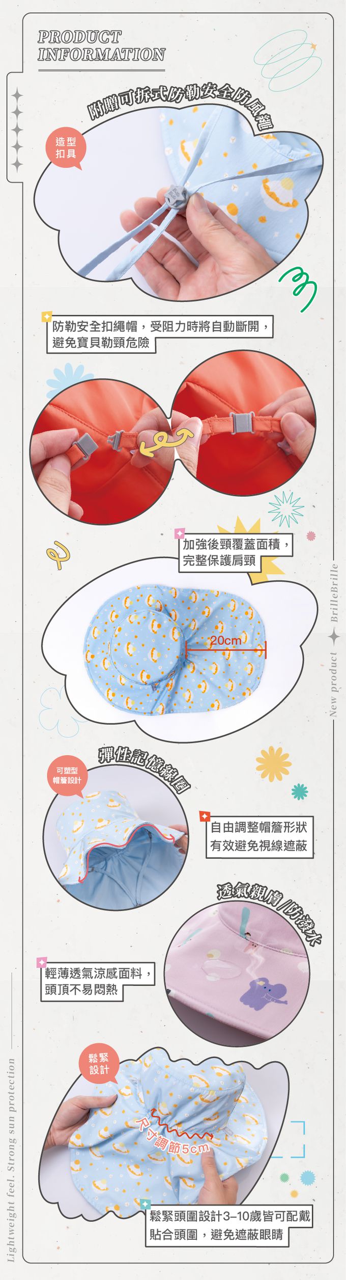 帽簷加長護頸,低頭玩沙加強脖子防曬
