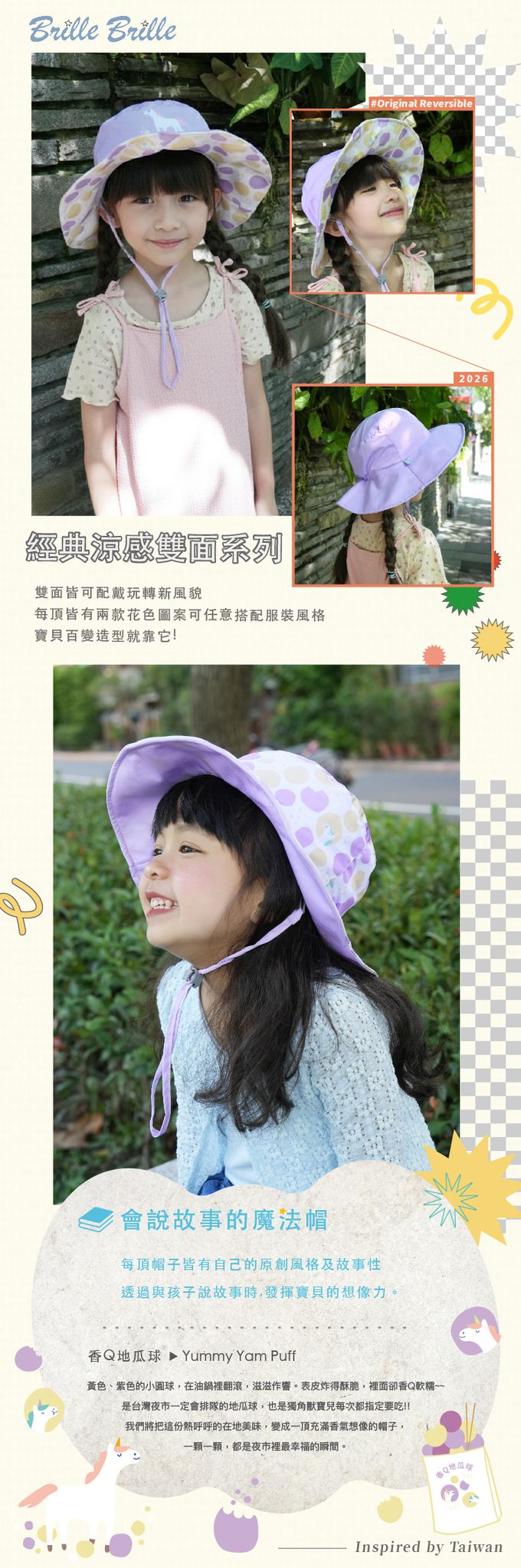 品名:Brille Brille 兒童防曬雙面帽(鬆緊版)-香Q地瓜球