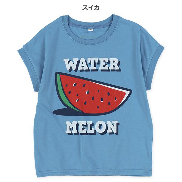 日本西松屋 - 巨大水果落肩短袖上衣-藍-西瓜