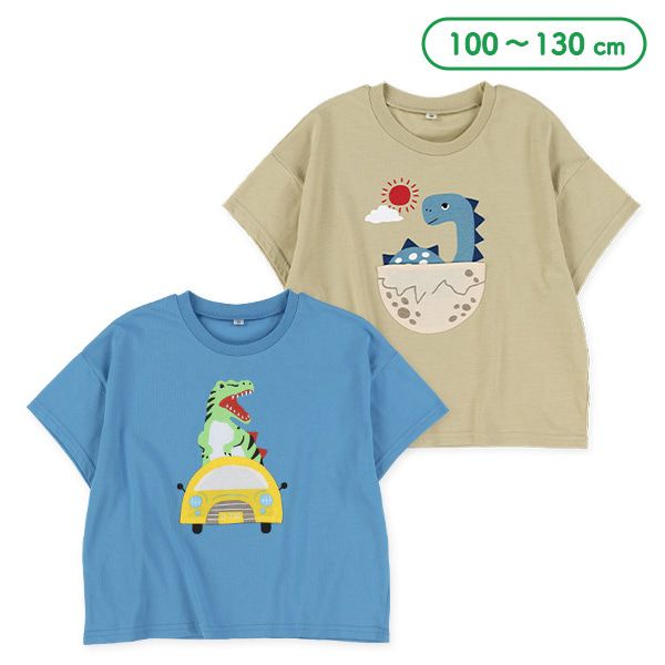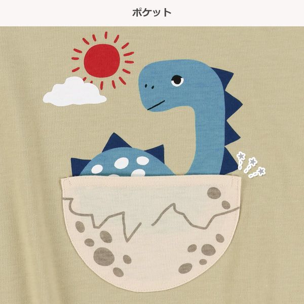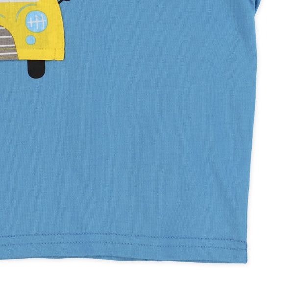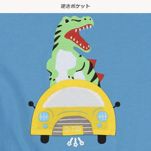 日本西松屋 - 俏皮恐龍口袋短袖上衣-恐龍坐車-藍