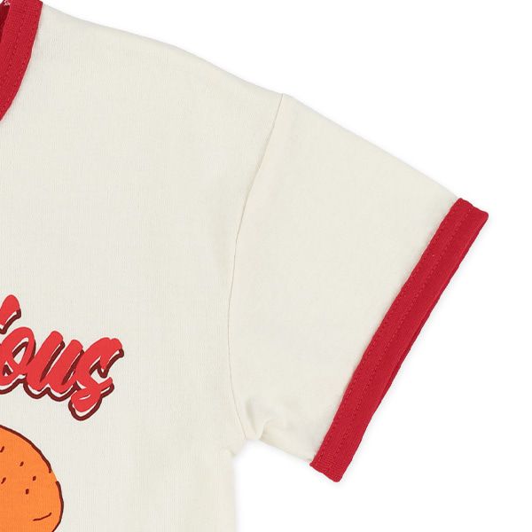 日本西松屋 - 美式漢堡印花滾邊短袖上衣-白