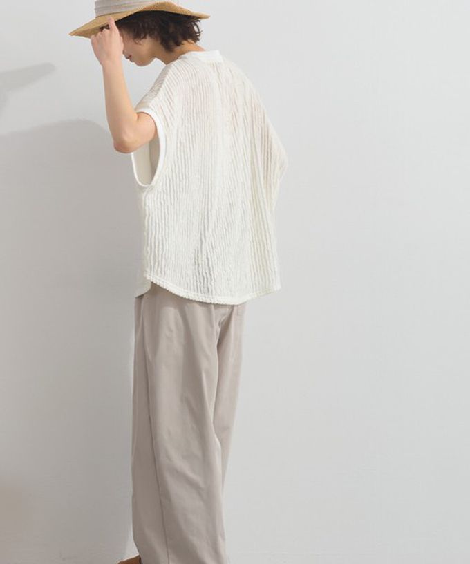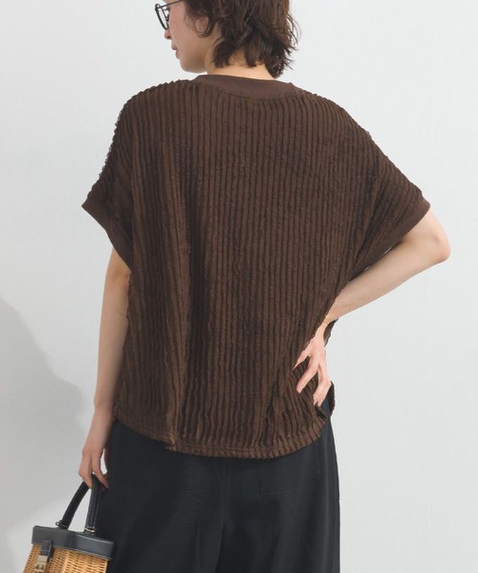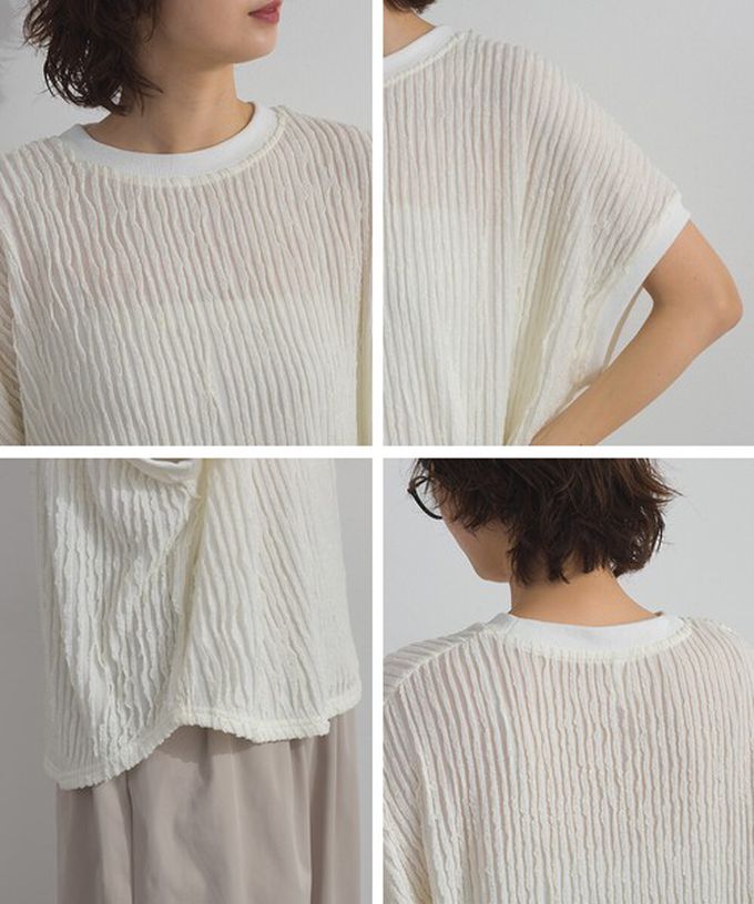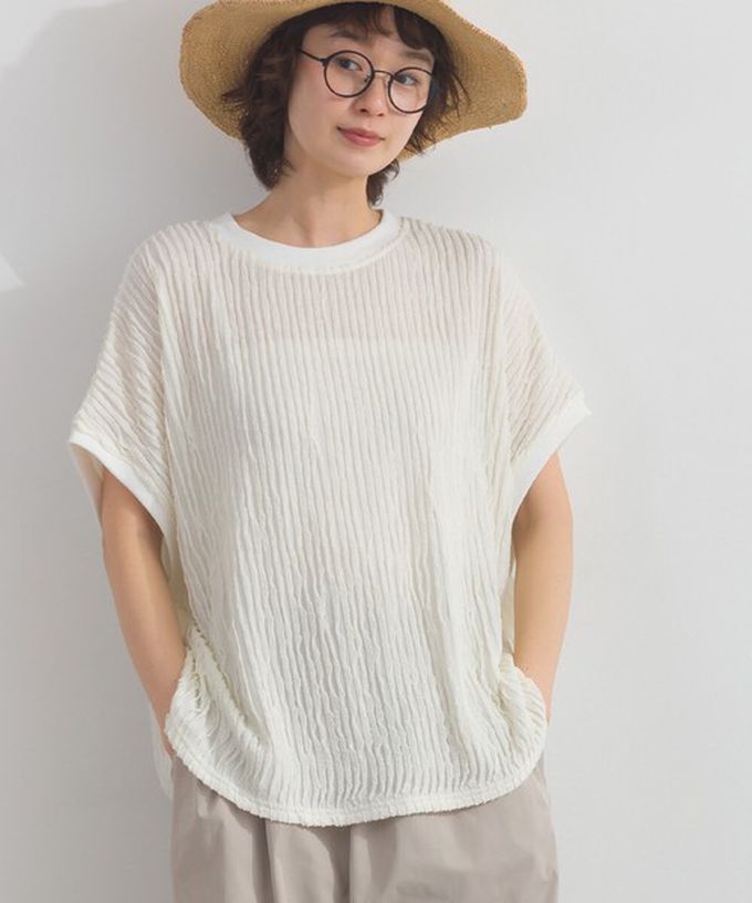 日本 Lupilien - 清新波浪紋理落肩寬版短袖上衣-白