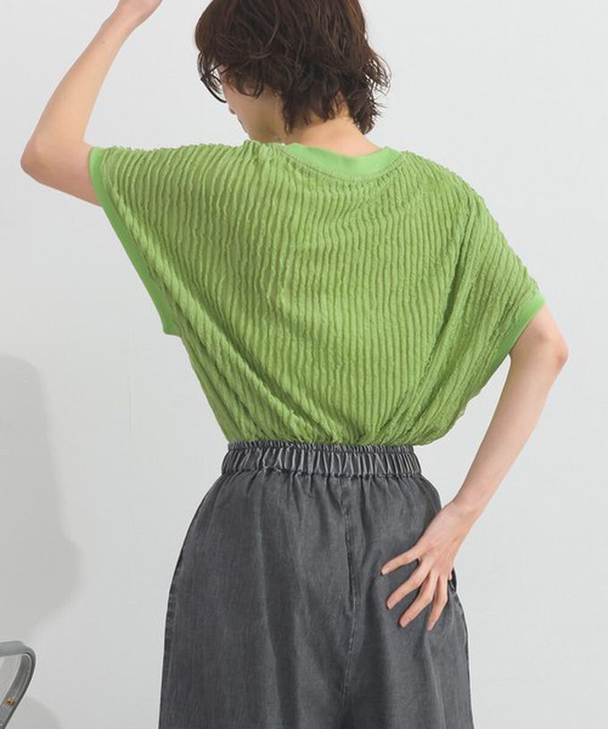 • 品名:清新波浪紋理落肩寬版短袖上衣