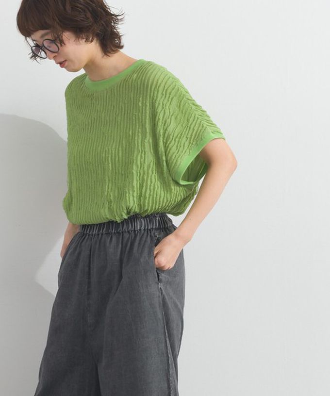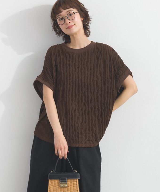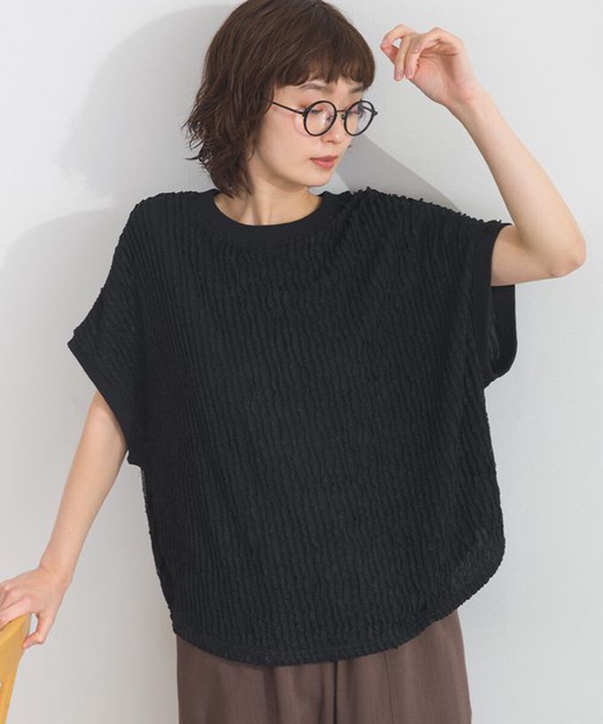 • 品名:清新波浪紋理落肩寬版短袖上衣
