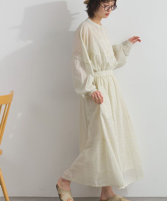 日本 Lupilien - 印度棉 交錯線條唯美緹花長裙-白