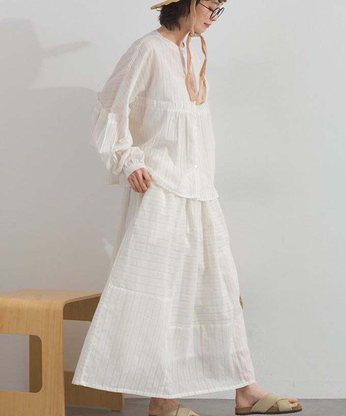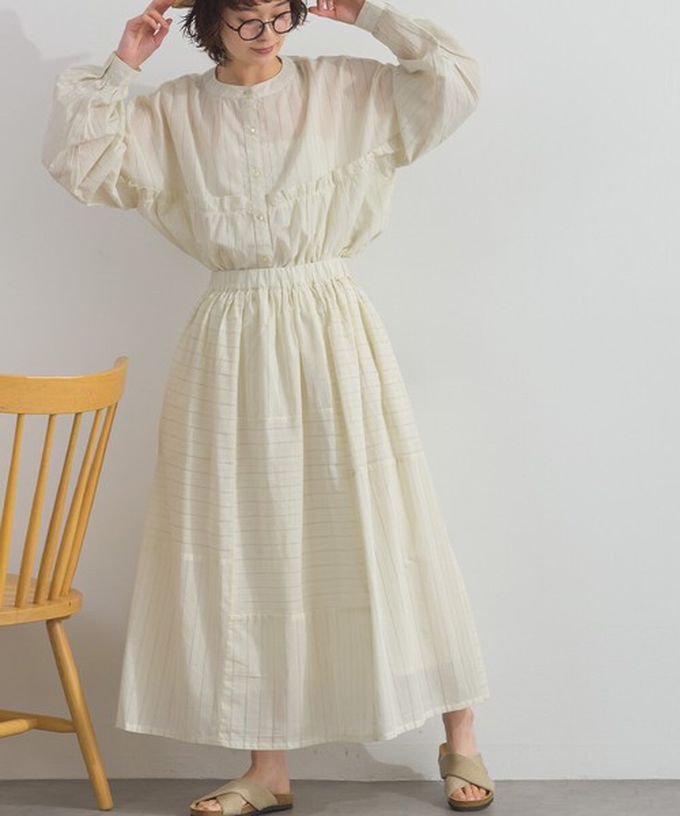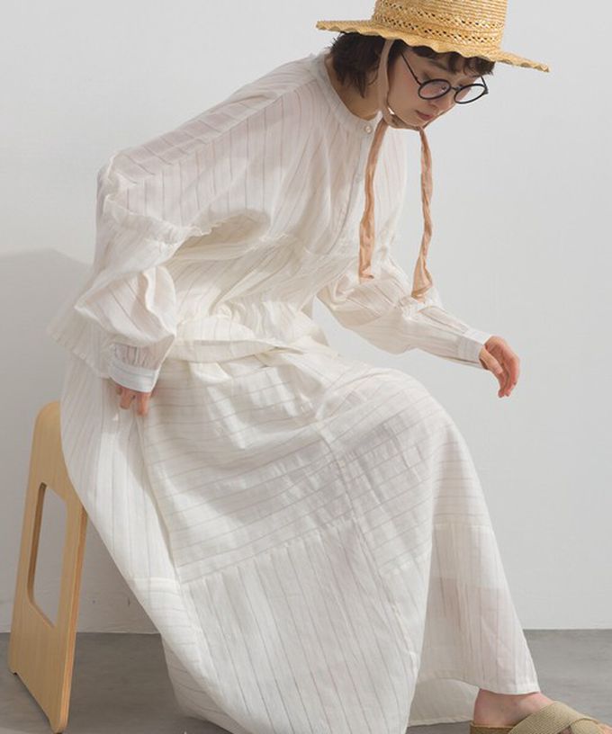 日本 Lupilien - 印度棉 交錯線條唯美緹花長裙-淺米黃