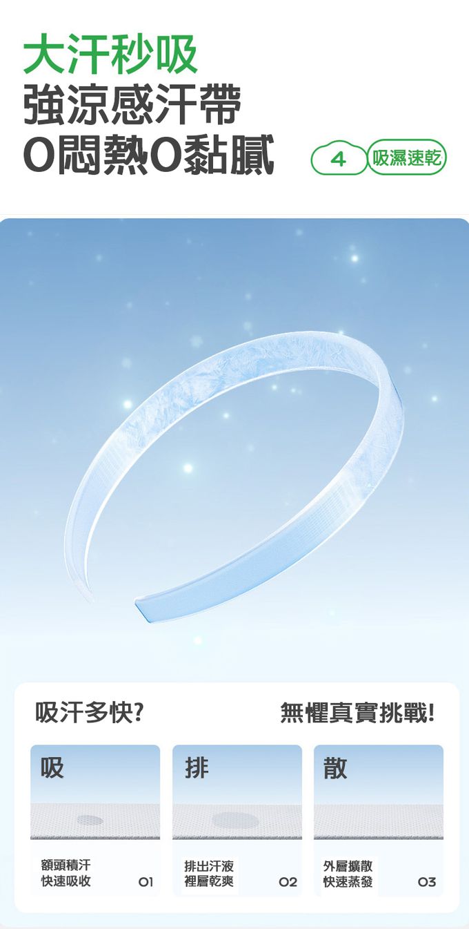 涼感汗帶、配戴一整天都不悶熱