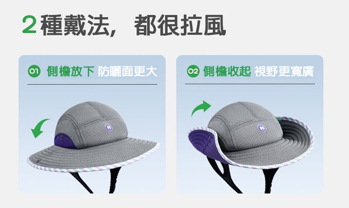兩種戴法側沿可收起,視野更寬廣