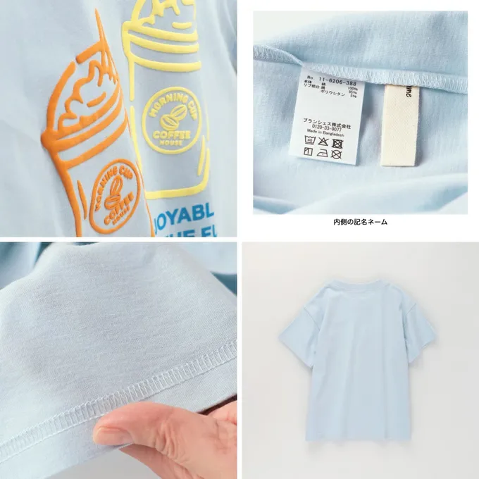 日本 BRANSHES - 舒適棉印花短袖上衣-Bonjour-咖啡