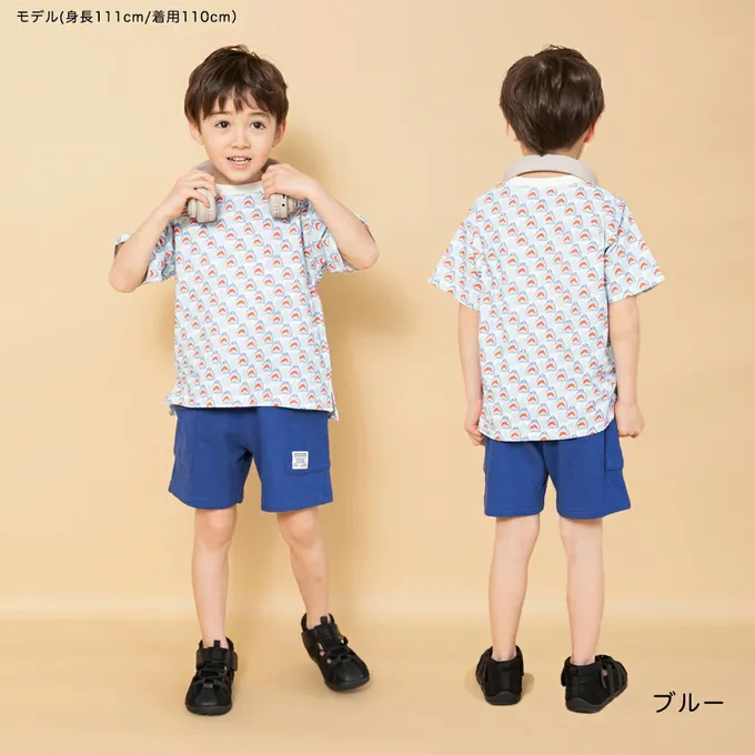 日本 BRANSHES - 100%天竺棉清爽短袖上衣-胸口鯊魚-淺灰