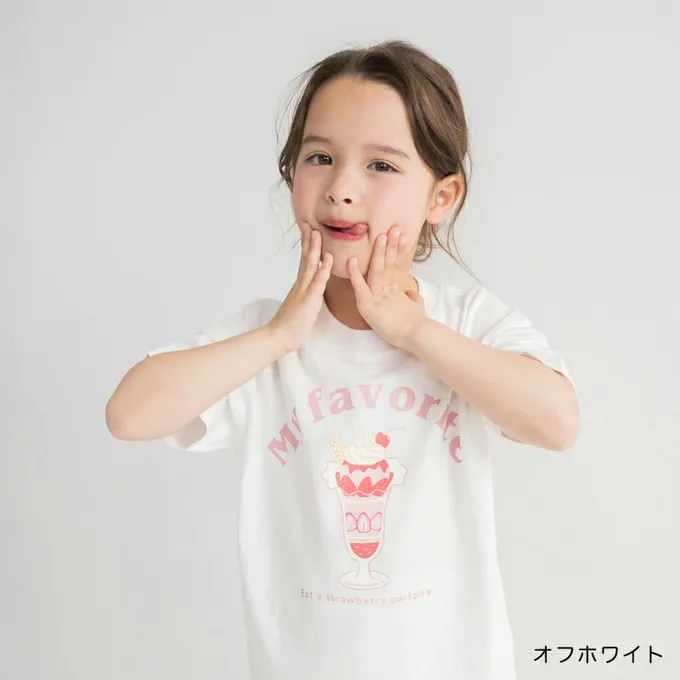 日本 BRANSHES - 100%天竺棉女孩短袖上衣-切片蛋糕-淺黃
