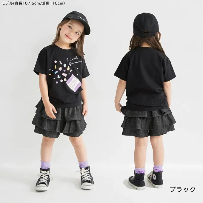 日本 BRANSHES - 100%天竺棉女孩短袖上衣-軟糖爆炸-黑