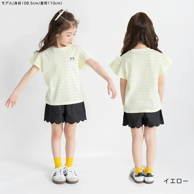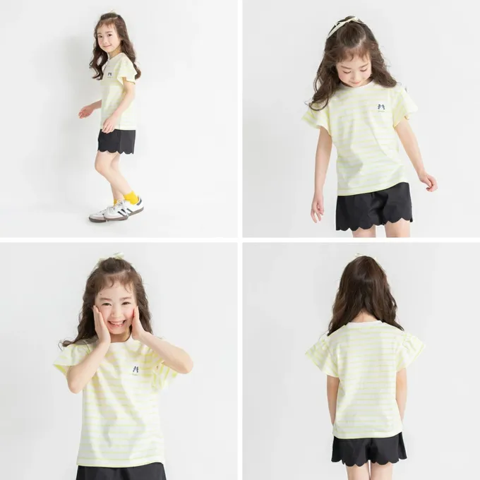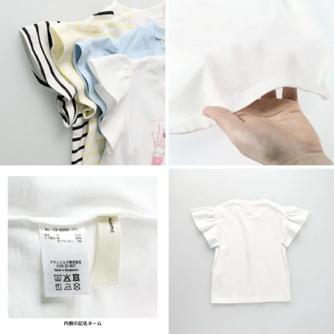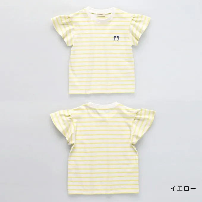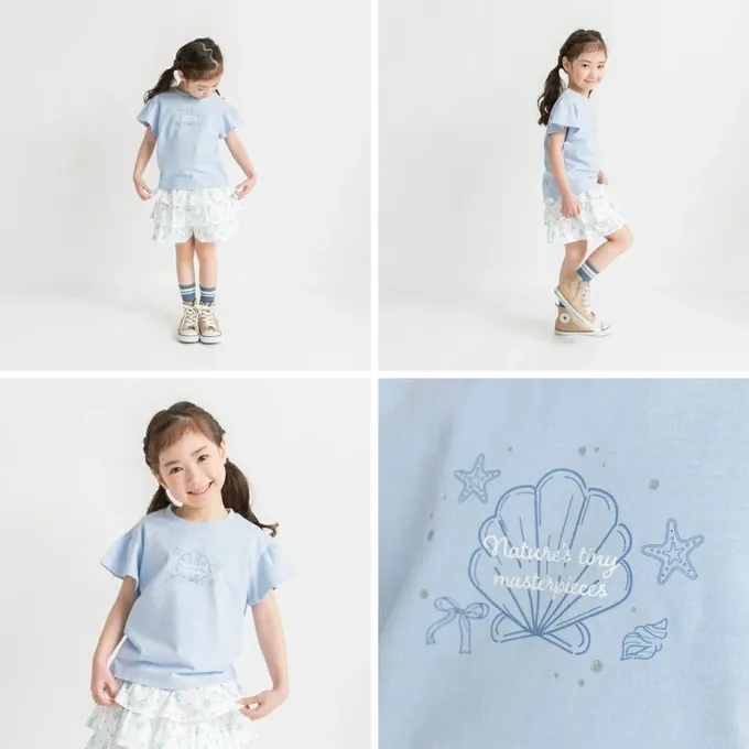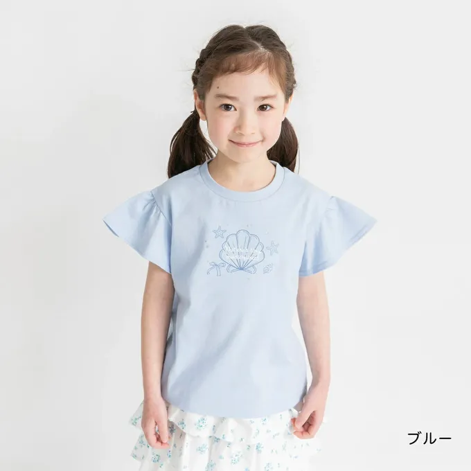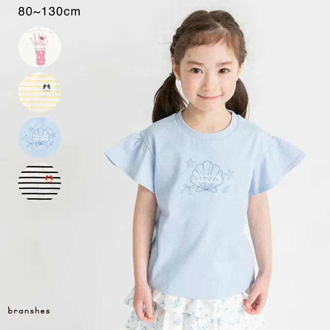 日本 BRANSHES - 100%棉 荷葉短袖上衣-貝殼-水藍