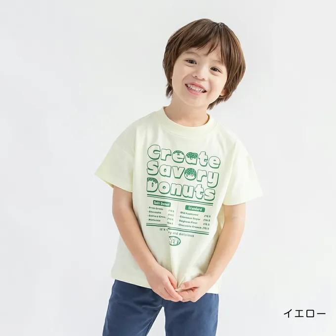 日本 BRANSHES - 100%天竺棉 印花短袖上衣-甜甜圈-淺黃