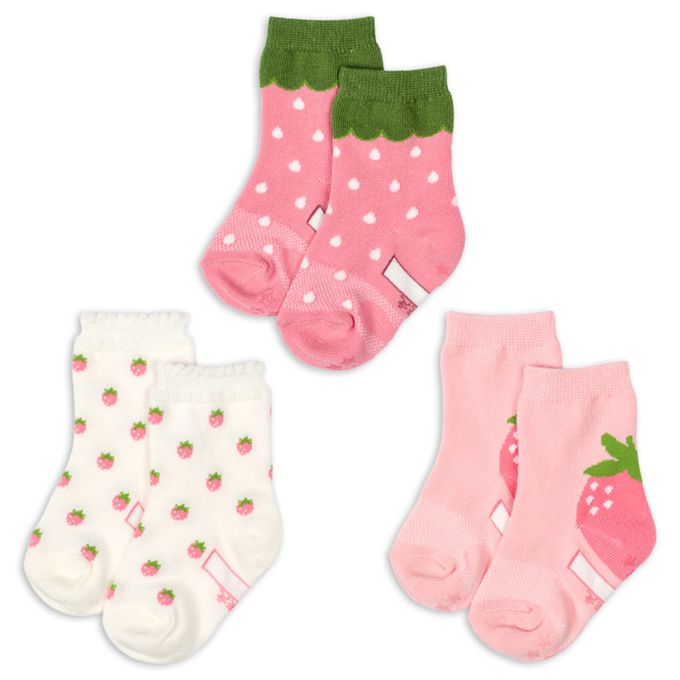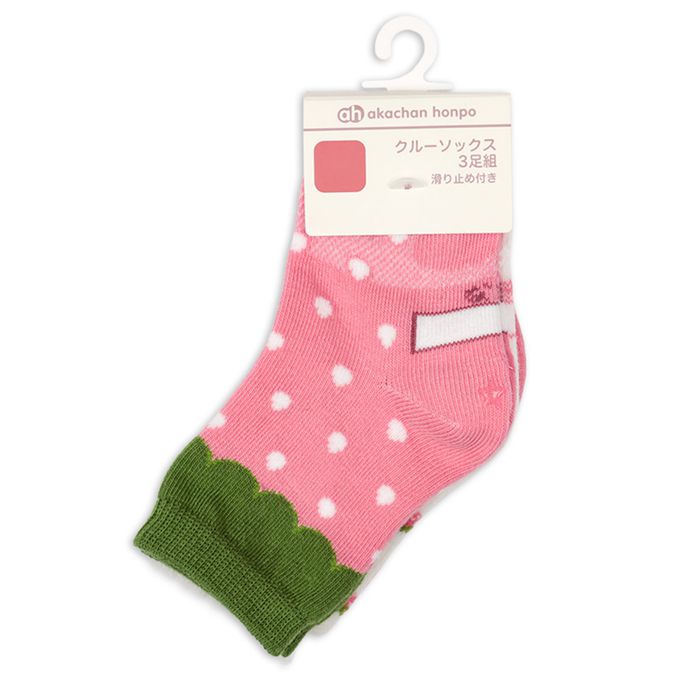 akachan honpo - 中長襪3雙組-草莓-粉紅色 (9~14cm)