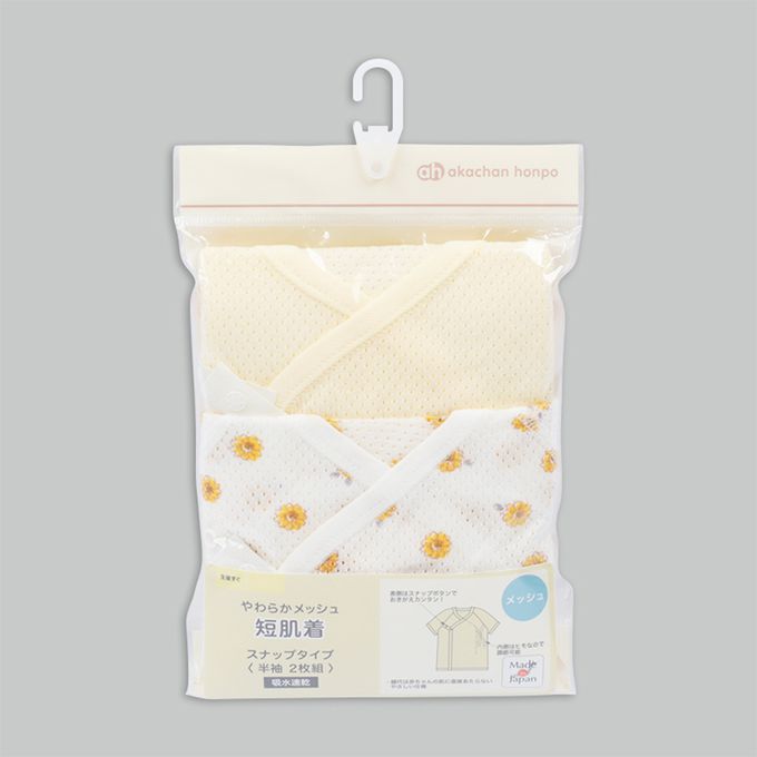 短袖網眼肚衣2件組-按扣款-奶油色 (50cm)