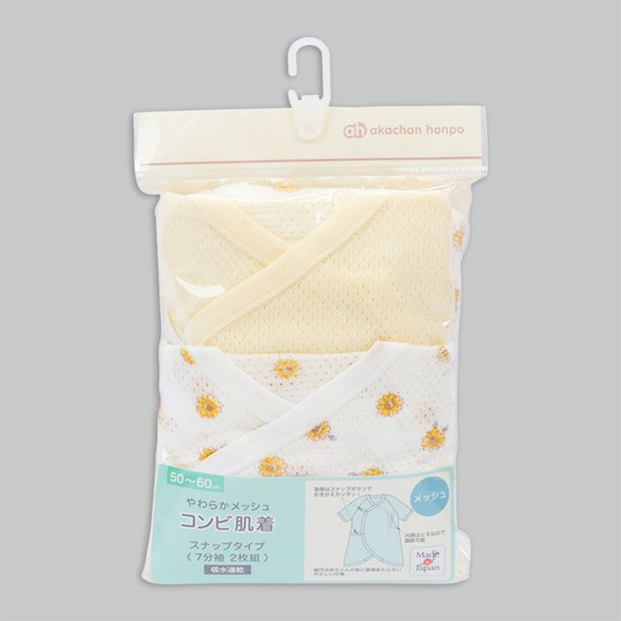 akachan honpo - 7分袖網眼蝴蝶裝2件組-按扣款-米白色 (50~60cm)