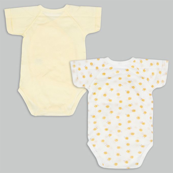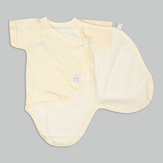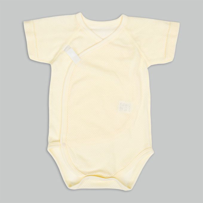 短袖網眼包屁衣2件組-按扣款-奶油色 (50~60cm)