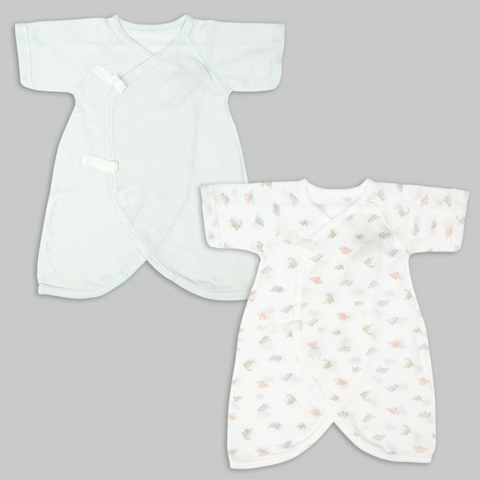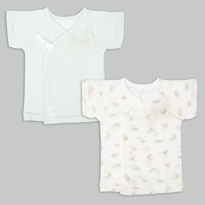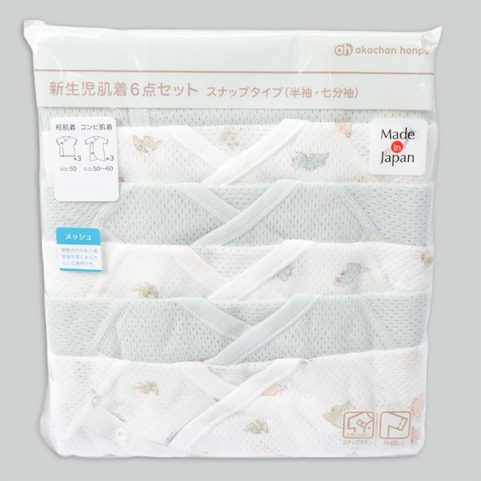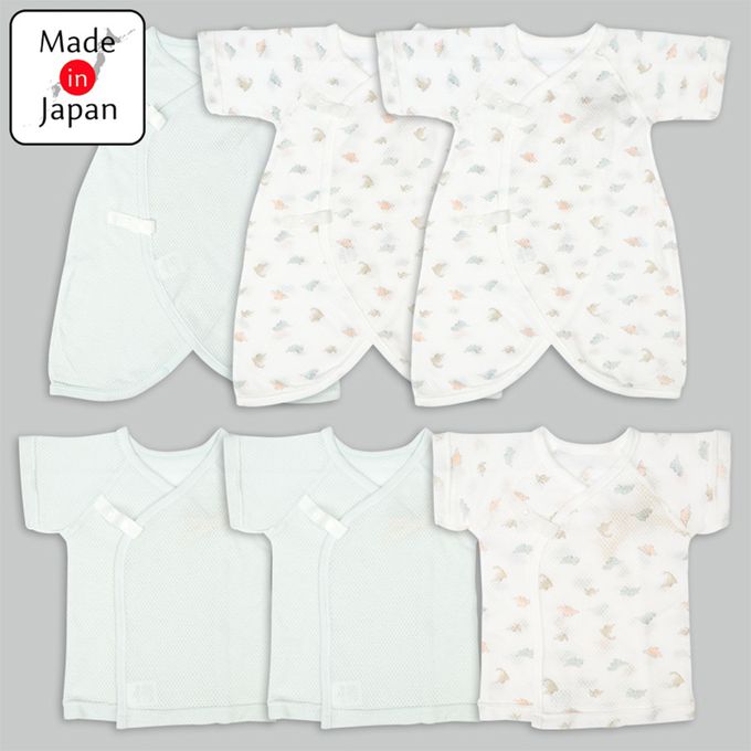 新生兒網眼內衣6件組-短袖 7分袖-綠色