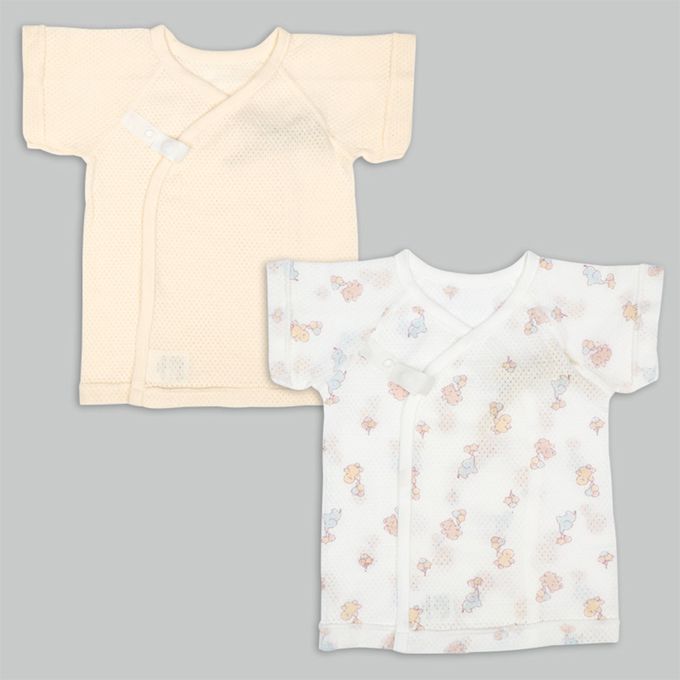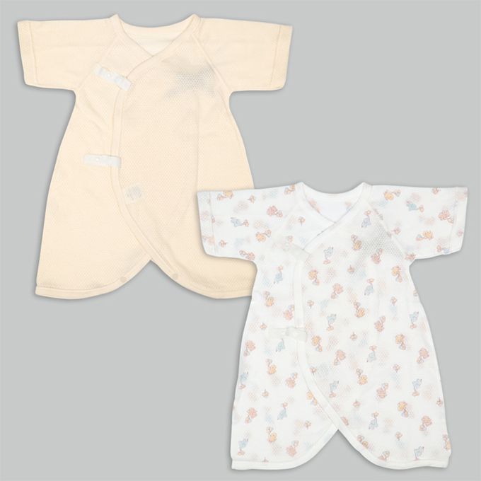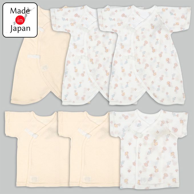 新生兒網眼內衣6件組-短袖 7分袖-奶油色