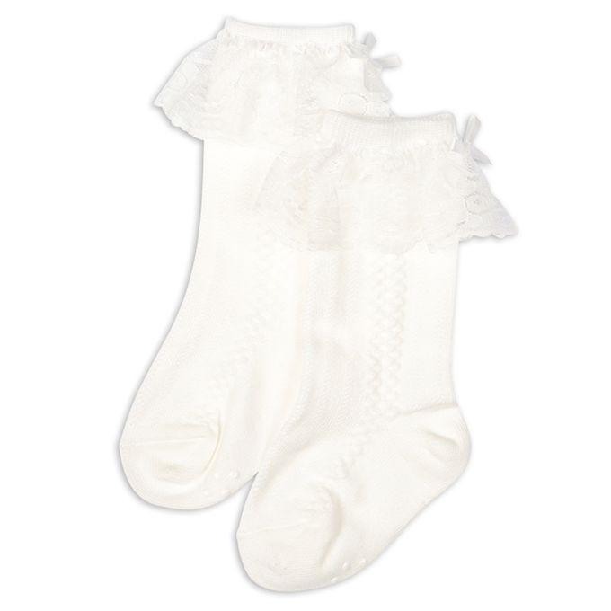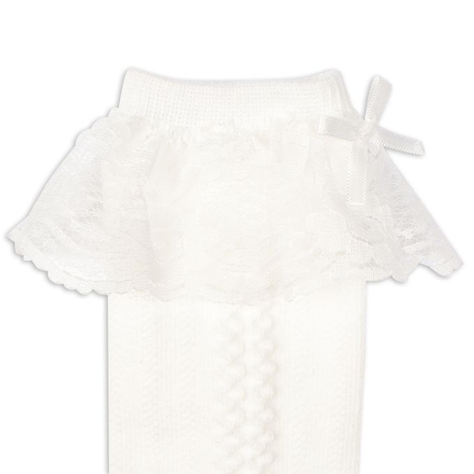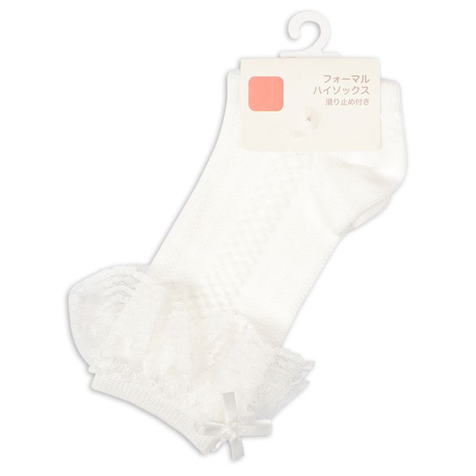 正式長筒襪-蕾絲蝴蝶結-白色 (9~14cm)