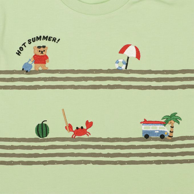 短袖T恤-局部刺繡-綠色