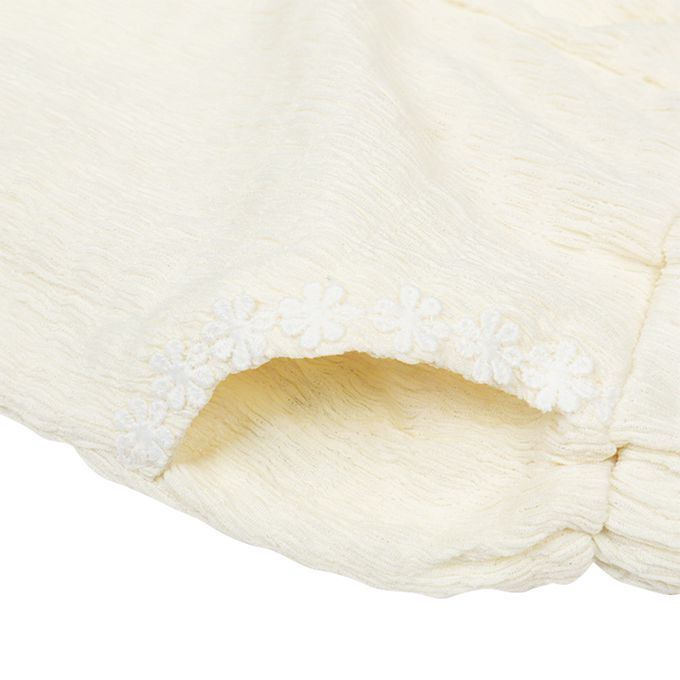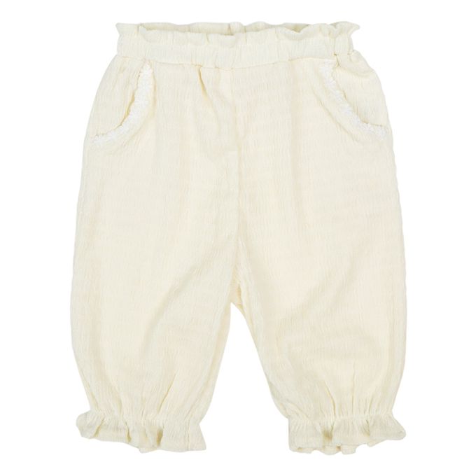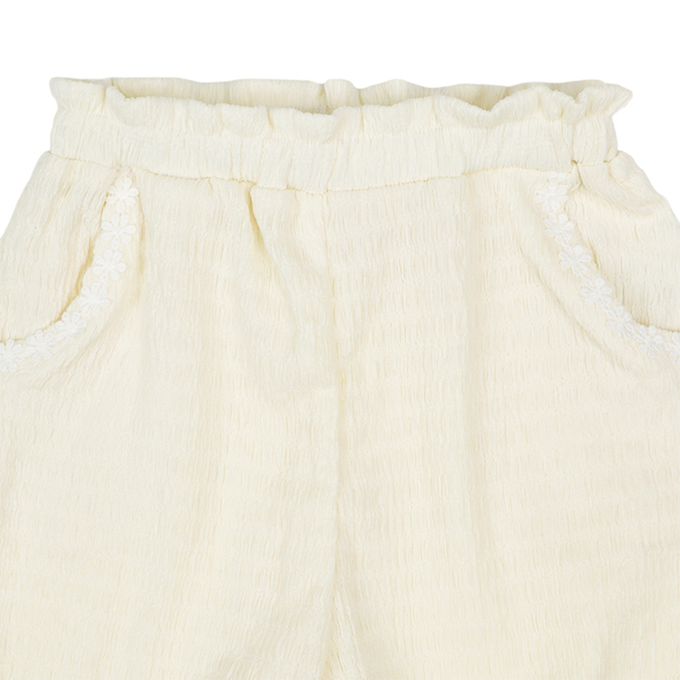 7分緹花褲-小花-米白色