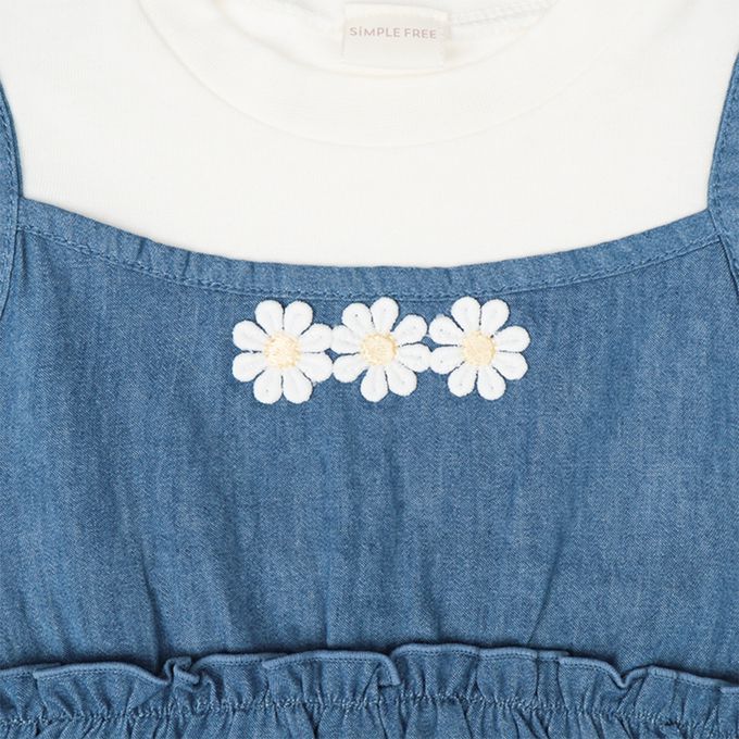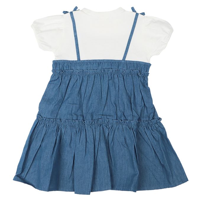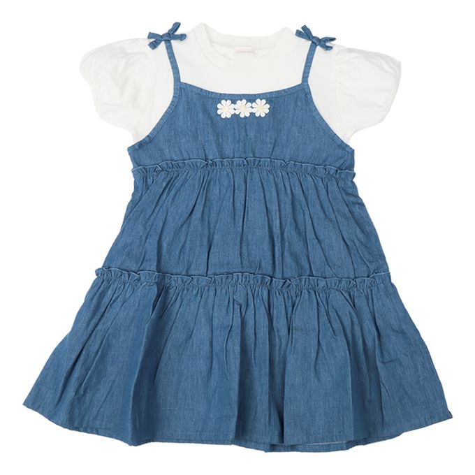 短袖T恤外搭細肩帶洋裝的假兩件時尚設計