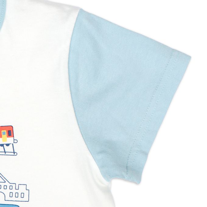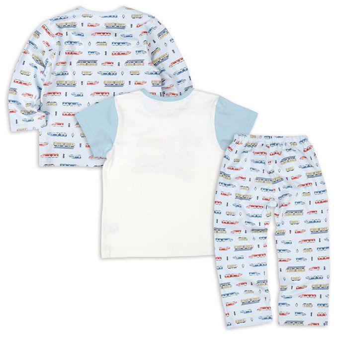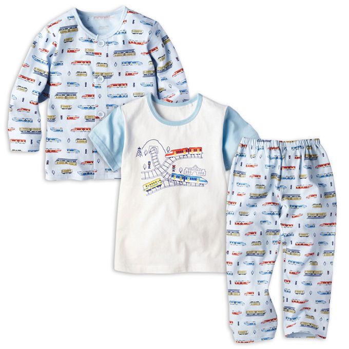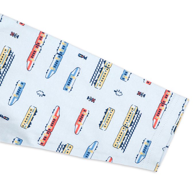 雙上衣家居服(短袖/長袖)-電車-淺藍色