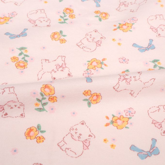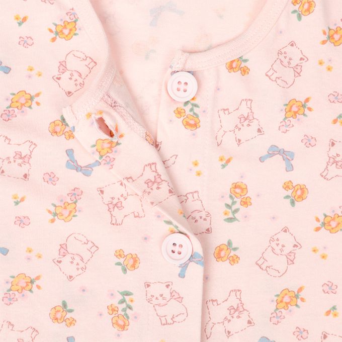 雙上衣家居服(短袖/長袖)-小貓-粉紅色
