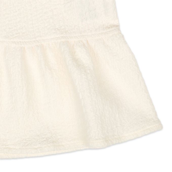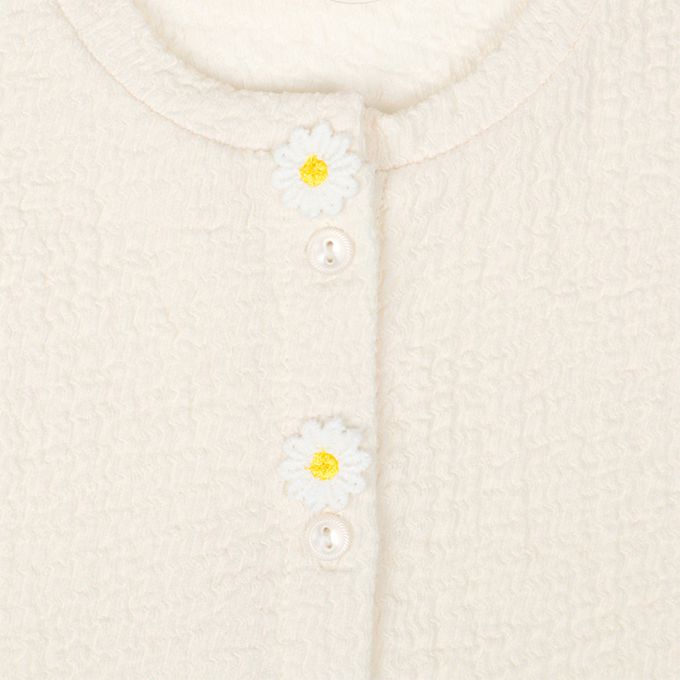 釦子開口處的小花圖案和下擺荷葉邊是亮點