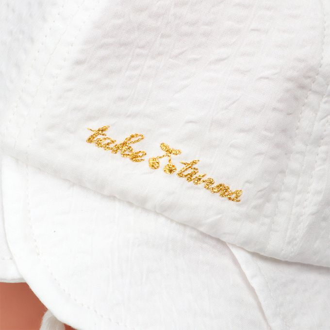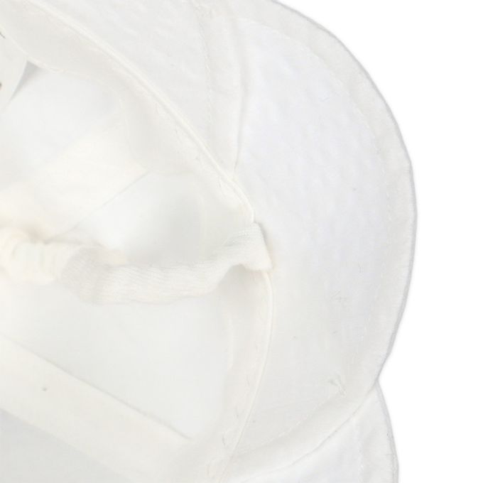 下巴鬆緊帶用棉布包覆住,不刺激寶寶的肌膚