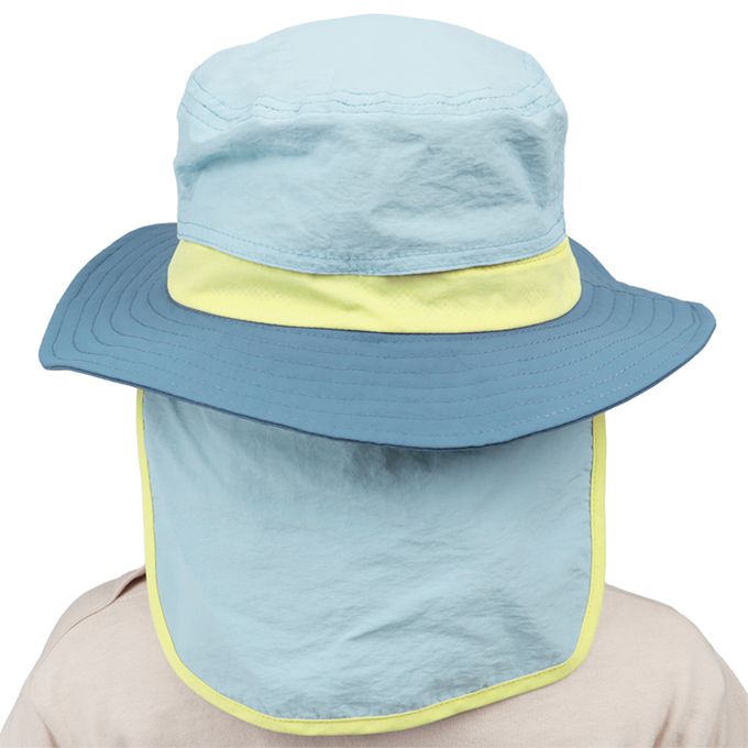 漁夫帽-附防曬遮陽布 內裡網眼 素面-淺藍色