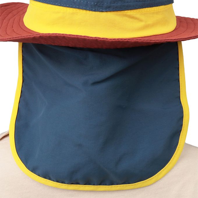 漁夫帽-附防曬遮陽布 內裡網眼 素面-深藍色