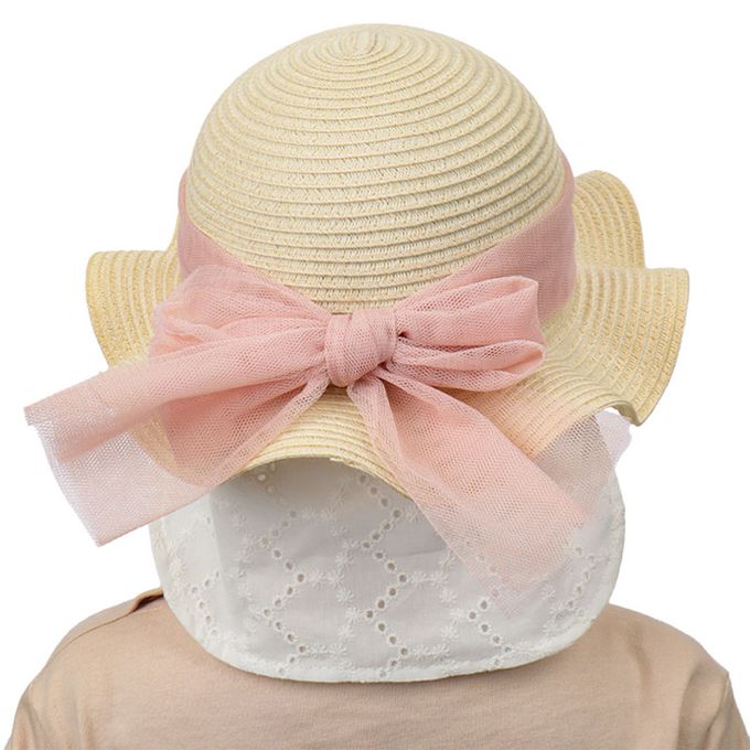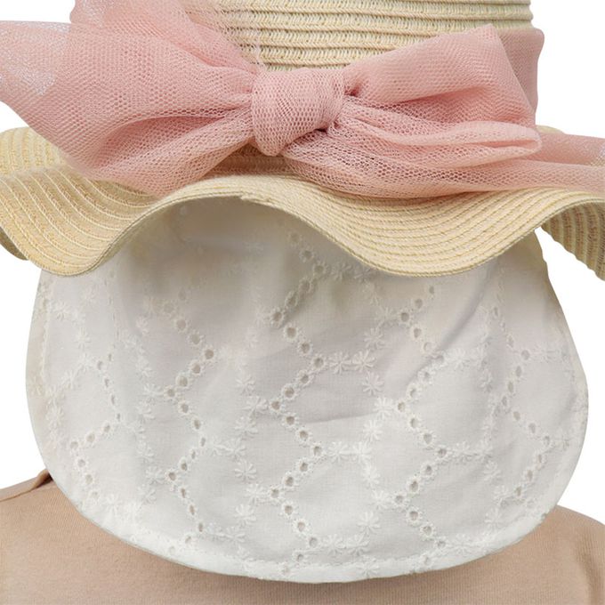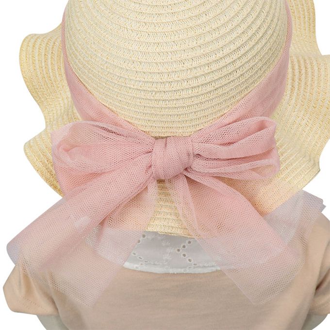 波浪邊帽 可洗可折疊-薄紗蝴蝶結-粉紅色