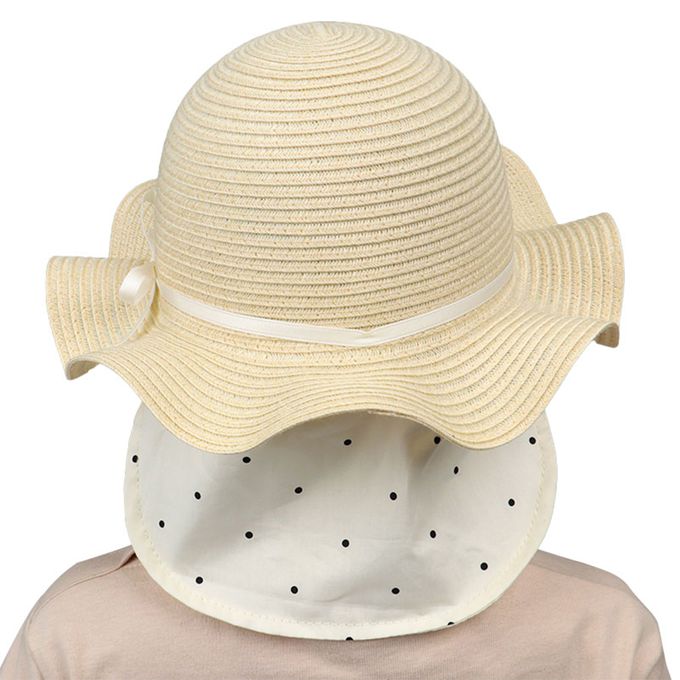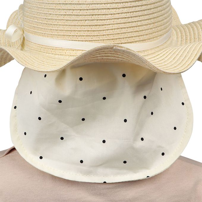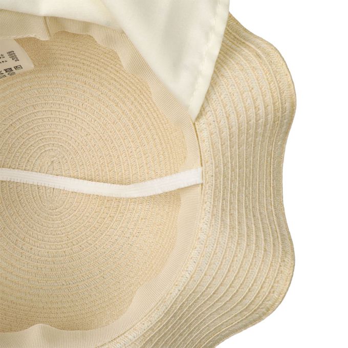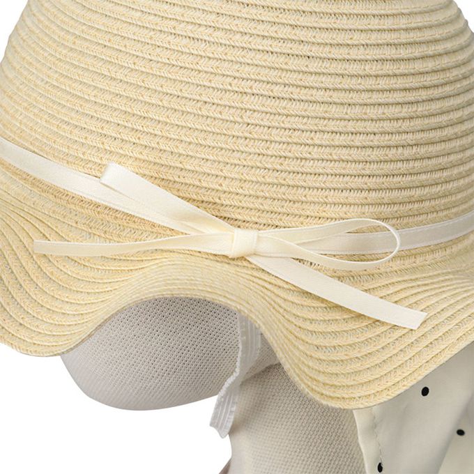 波浪邊帽 可洗可折疊-細緞帶蝴蝶結-淺卡其色