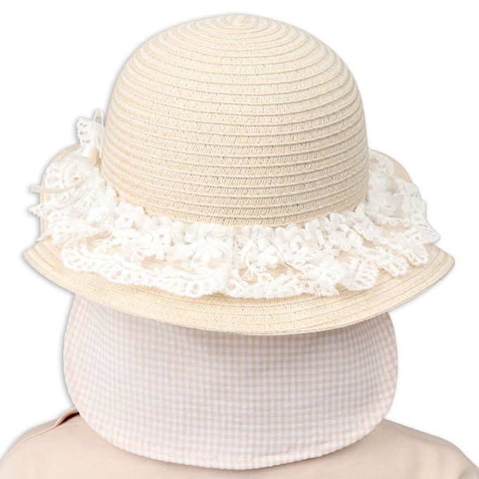 材質:【本體】聚酯纖維100%【蕾絲部分】[底布]尼龍100%[刺繡紗線]棉100%【遮陽布正面】棉52%聚酯纖維48%【遮陽布內裡】聚酯纖維97%棉3%