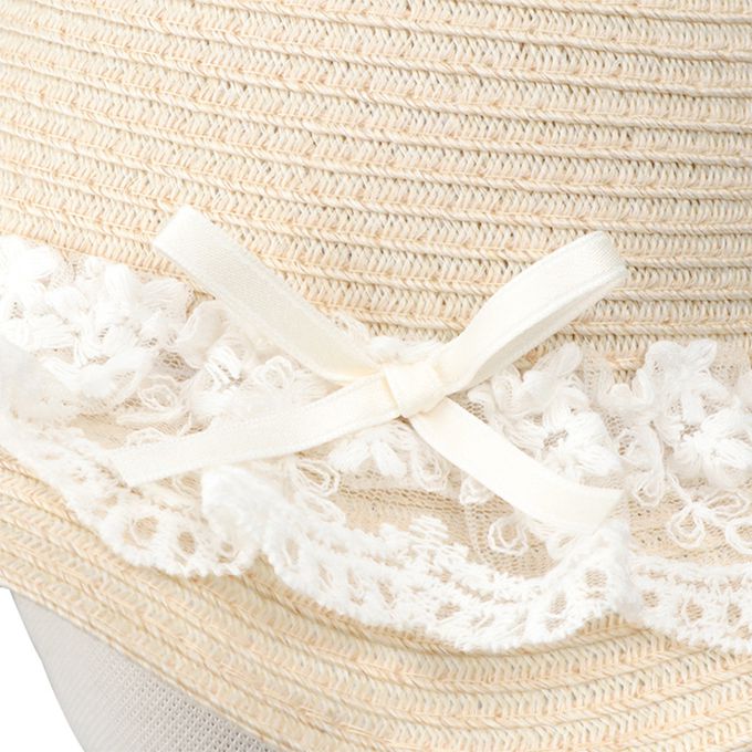 圓頂帽 可洗可折疊-蕾絲帽簷-象牙白色