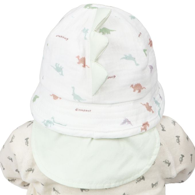 圓頂帽-附防曬遮陽布 恐龍-米白色
