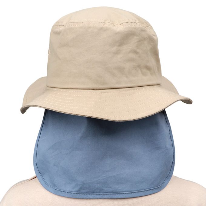 漁夫帽-橡膠布貼 附防曬遮陽布-淺卡其色