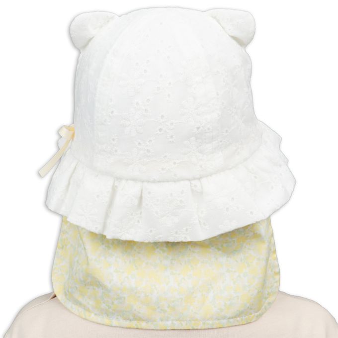 貓耳圓頂帽-附防曬遮陽布-米白色